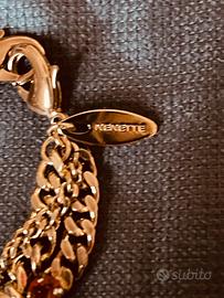 Braccialetto a maglie dorata a 3 giri con grossa pietra e farfalla . Di Nenette.