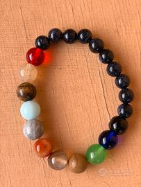 Braccialetto in pietre colorate, mai usato. la circonferenza del polso della foto è 15 cm ma il bracciale è elastico..