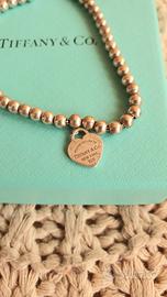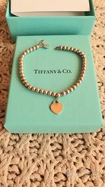 Braccialetto cuore rosa, in argento 925, Tiffany. Il braccialetto necessita una pulizia in gioielleria per l'ossidazione naturale dell'argento.