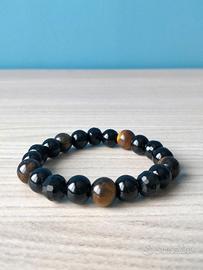 Braccialetto 10 pietre sferiche nere 5 pietre sferiche marroni 5 sfere sfaccettate Filo elastico Diametro 55 mm