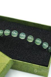 Braccialetto in Pietra Naturale Giada con polsino regolabile in similcuoio con chiusura in acciaio. L'accessorio moda del momento. Indicato per un look deciso e determinato che strizza l'occhio al tempo stesso alla Meditazione ed alla pratica Yoga.