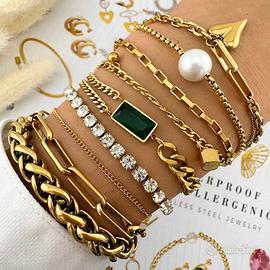 Questo elegante bracciale da donna color oro è nuovo e nella confezione originale. Un gioiello intramontabile che valorizza ogni outfit. Perfetto come regalo o per te stessa. La lavorazione di alta qualità garantisce una lunga durata. Un vero e proprio richiamo visivo per ogni occasione. Assicurati subito questo must-have! Materiale: acciaio inossidabile, placcatura in oro. Lunghezza del bracciale: 16 + 5 cm. Larghezza del bracciale: 0,4 cm. Inserzioni: zirconi. Sallinosbijoux è impermeabile e ipoallergenico. La placcatura è resistente e non si ossida. Peso: 4 g