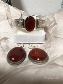 Parure composta da orecchini e bracciale in argento con corniola . Possono essere venduti anche separatamente : 40€ gli orecchini e 60€ il bracciale.
