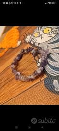 Braccialetto elasticizzato pietre ametista naturale proprietà benefiche ottime:L'ametista è una pietra preziosa associata a proprietà calmanti, spiritualie di protezione, che favorisce la serenità,la chiarezza mentale e l'intuizione, aiutando a ridurre stress, ansia e insonnia,e stimolando il chakra della corona per una connessione più profonda con sé stessi e l'universo, purificando al contempo il corpo e la mente.estetica molto bella regolato per varie misure di polso.Stretch bracelet with natural amethyst stones with excellent beneficial properties: Amethyst is a precious stone associated with calming, spiritual, and protective properties. It promotes serenity, mental clarity, and intuition, helping reduce stress, anxiety, and insomnia, and stimulates the crown chakra for a deeper connection with oneself and the universe, while purifying the body and mind. Very beautiful, adjusted to various wrist sizes.
