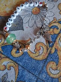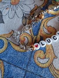 È un braccialetto "portafortuna" fatto a mano (da me). Regolabile con ciondolo.