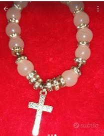 braccialetto con perline finte e zircone( Con crocetta centrale)