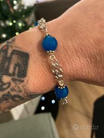 Braccialetto raffinato in argento 925, impreziosito da sfere di Agata blu sfaccettata dal colore intenso e luminoso.