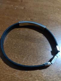 Elegante braccialetto con cinturino in caucciù e inserto in metallo. - Design moderno con dettagli incisi. - Chiusura a scatto in metallo.