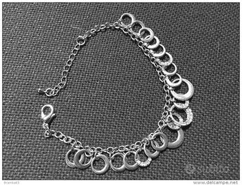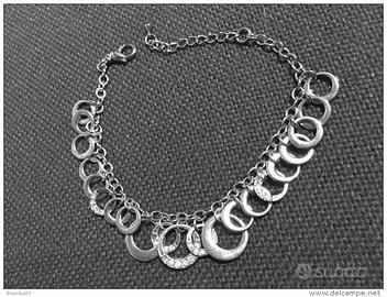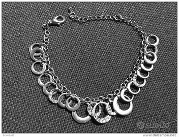 Braccialetto in metallo grigio con anelli e pietre brillanti, non vere, tipo strass Spese di spedizione a carico acquirente