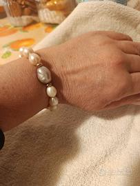 Delizioso braccialetto in perle barocche elasticizzato con perla centrale Barocca Argento, Nuovo mai indossato!!