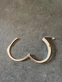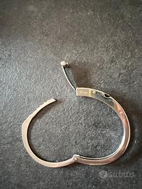 In acciao. Usato. Presenta leggeri segni, da uso. Stiloso. Come foto, misura 6,6/7 cm. Leggero. Non si passa inosservati