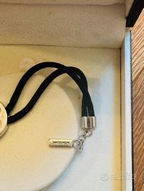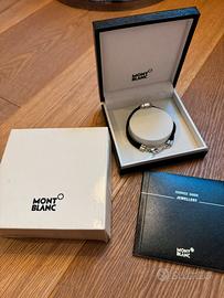 Bracciale autentico Montblanc, realizzato con cordino in seta nera e impreziosito da un unico ciondolo in argento sterling 925. Chiusura a moschettone in argento, elegante e sicura. Design sobrio ma distintivo, ideale per uno stile raffinato e minimal.