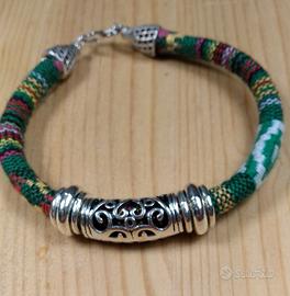 Braccialetto Nepal in cotone e chiusura in argento. cm. 21 Possibili altre misure.