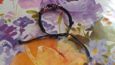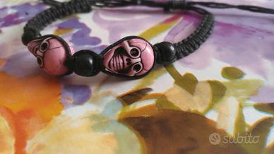 BELLISSIMO BRACCIALETTO NERO CON TESCHI ROSATI REGOLABILE,QUINDI ADATTO A TUTTE LE MISURE!