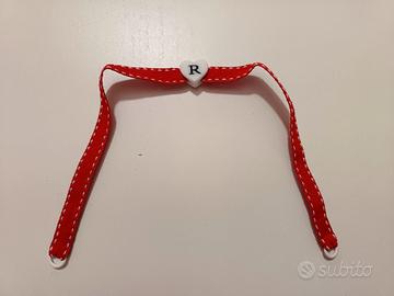 Braccialetto Nora Pfeiffer in tessuto con cuore e iniziale in diverse fantasie. Lettere disponibili: D - E - G - I - N - O - R. (il prezzo da intendersi cad.)