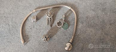 vendo come da foto questo braccialetto originale Pandora e ciondoli sempre originali della linea Pandora . Solo consegna a mano no perditempo .