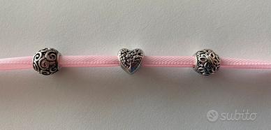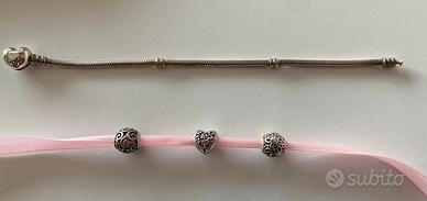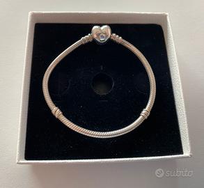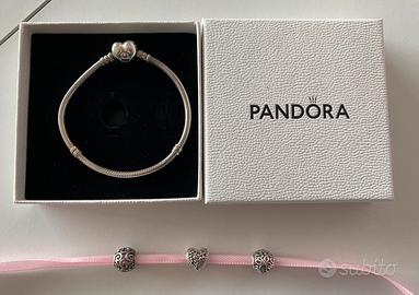 Braccialetto Pandora 18 cm con chiusura a cuore e 3 charme mai usato.