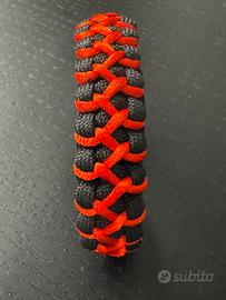 Braccialetto intrecciato in paracord 550, colori nero con intreccio rosso.