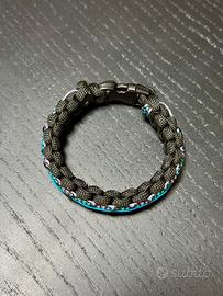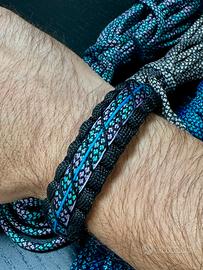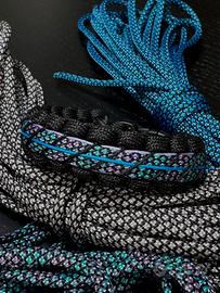 Braccialetto intrecciato in paracord 550, colori Nero e Multicolore.
