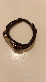 Braccialetto pelle intrecciata e cuoio segno zodiacale "Toro". inciso mai usato nella sua confezione originale in bustina di plastica trasparente. Sia per donna che per uomo. Lunghezza 22. Diametro del segno zodiacale 2 cm. Due grandezze di regolazione.