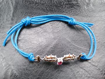 Braccialetto personalizzato nautico uomo con incrocio di ancora e timone e con rubino sintetico incastonato Veramente particolare e bello da vedere