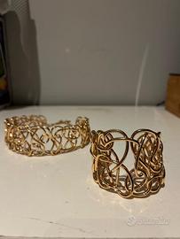 Collana choker e bracciale di gioielleria contemporanea, firmati da designer brasiliana e realizzati con placcatura in oro di altissima qualità.