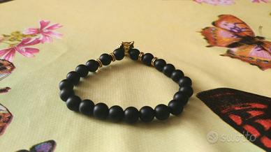 I braccialetti Reiki sono bellissimi esteticamente,composti da pietre nere lisce e charm Totem Lupo color oro.