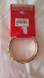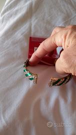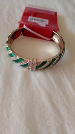 Braccialetto in metallo dorato a strisce verdi con strass diametro cm 6