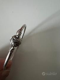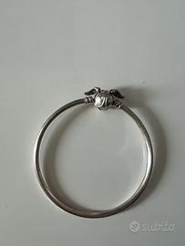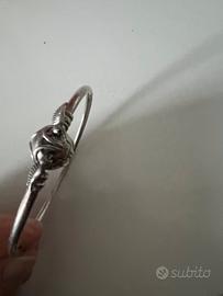 Braccialetto rigido in argento pandora con boccino d’oro e scritta originale sul lato. Usato ma in ottime condizioni