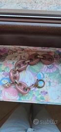 Elegante braccialetto con maglie grandi color rosa cipria e dettagli dorati. Un grazioso ciondolo a forma di conchiglia aggiunge un tocco unico. - Maglie grandi in resina color rosa cipria. - Dettagli dorati tra le maglie. - Ciondolo a forma di conchiglia.