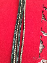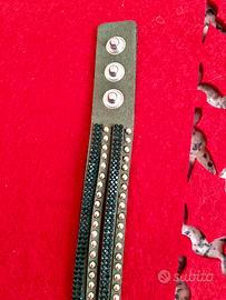 Braccialetto verde scuro scamosciato nuovo con borchiette e lustrini, avvolgibile al braccio in vari modi e in diverse misure. Idea per Natale!