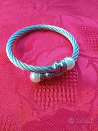 Vendo Bracciale Secret & You NUOVO in acciaio inossidabile intrecciato, con perle coltivate d’acqua dolce di altissima qualità in termini di forma, superficie, colore e lucentezza. Questo bracciale è lungo 18 cm la dimensione del polso più comune, ma poiché non è completamente chiuso può adattarsi ai polsi più grandi e più piccoli. Le perle sono da 10 a 10,5 mm. Questo design è perfetto per l'uso quotidiano, è un gioiello molto forte e ben fatto perfetto per una giornata in ufficio e anche un'ottima opzione per una serata informale con le ragazze.