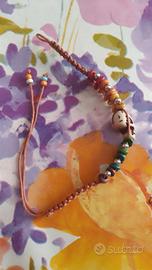 BELLISSIMO BRACCIALETTO TRIBALE CON TESCHIO BIANCO E PERLINE COLORATE REGOLABILE,QUINDI ADATTO A TUTTE LE MISURE!