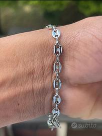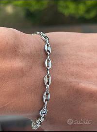 Braccialetto da uomo in acciaio inossidabile, maglia chicco di caffè. Elegante, resistente e mai usato.