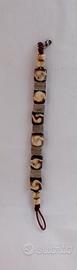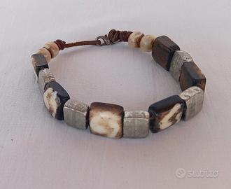braccialetto vintage da uomo artigianale con particolari pietre quadrate alternate a metallo lavorate con cordino di cuoio, chiusura a moschettone. Misura cm.20
