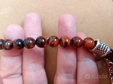 Braccialetto uomo in acciaio inossidabile e pietre dure naturali occhio di tigre nuovo non usato. Lunghezza 19. 5 cm.