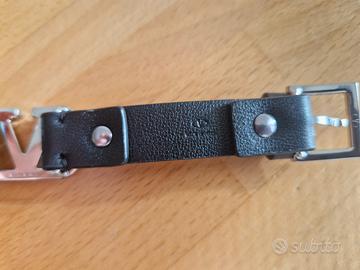 Braccialetto Valentino Garavani in pelle nero, con fodero, scatola e cartellino ma senza etichetta perché ricevuto come regalo.