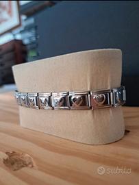 Vendo braccialetto a maglie, e quindi regolabile, in acciaio con motivo a cuore. Braccialetto semplice, molto in voga negli anni 2000 tra gli adolescenti.