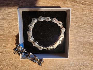 Vendo n.2 bellissimi bracciali in acciaio con maglia catena moto, uno misura 18.5cm, l'altro 20.5cm. Prezzo inteso l'uno.