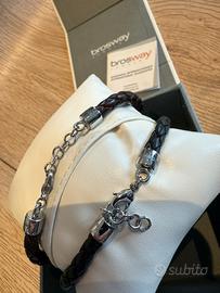 Coppia di bracciali Brosway in pelle intrecciata con inserti in acciaio lucido dal design inciso. Confezione originale e garanzia internazionale inclusa. Perfetti per un look casual-chic o come idea regalo coordinata.