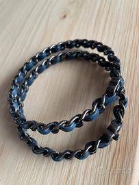 Coppia di bracciali CC Chanel originali in metallo e pelle blu scuro