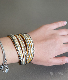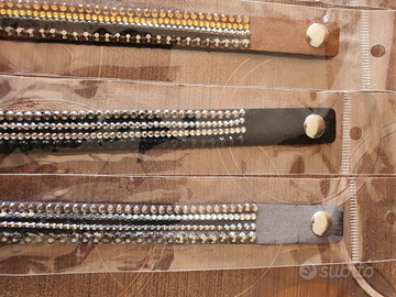 9 bracciali donna in cuoio: 6 colore cuoio, 1 grigio, 1 beige, 1 nero Lunghezza cm 39,5 (si utilizza a doppio giro) Larghezza cm 1,5