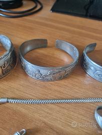 Bracciali da Schiava in Silver e Caucciu' Set Bracciali in Silver con varie Decorazioni e Bracciali in Caucciù. N.B. I bracciali in Silver da Schiava si devono lucidare.