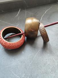 bracciali donna in metallo e bambù intrecciato si vendono anche singolarmente