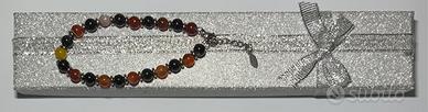 Un bracciale elegante e leggero, disponibile in più varianti colore, perfetto da indossare ogni giorno o da regalare. Le perle effetto pietra sono alternate a distanziatori metallici che donano brillantezza e un tocco moderno.