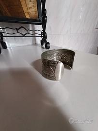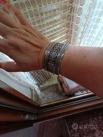 Lotto 2 Bracciali etnici, diametro circa 6.5 cm, ma regolabili perché aperti sul retro. Altezza bracciale cm 3.5