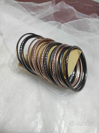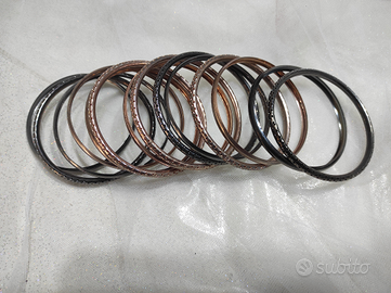 Set di 14 bracciali rigidi in metallo colore bronzo e grigio scuro.