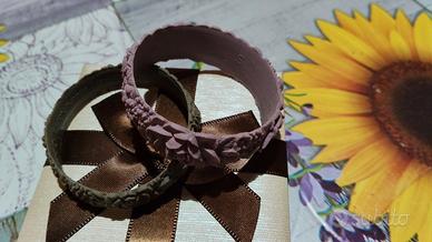 Regalo questi due bracciali in silicone della marca O BAG, uno grigio topo e l'altro rosa antico. Sono di taglia S ma non è la mia taglia, mi sono stati regalati e quindi sono nuovissimi! Consegna a mano alla stazione di Foligno!