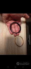 bellissimi bracciali in metallo , colore nero ed oro, messi vicini formano la scritta Love...