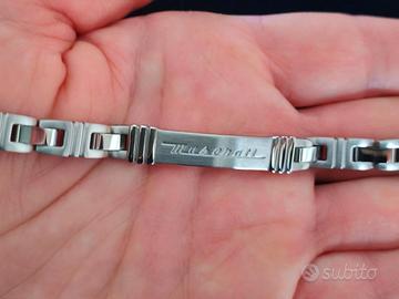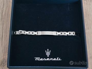 Bracciale Maserati iconic, colore argento, materiale acciaio, misura 21 cm, chiusura gancio. Regalo appena ricevuto, ma troppo grande. Mai indossato in scatola originale e garanzia. Prezzo non trattabile.